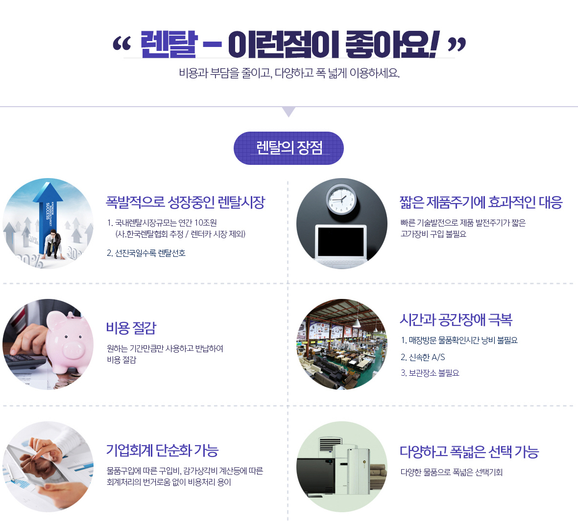 HOME > 판매·렌탈·매입안내 > 렌탈종합안내 > 렌탈의 잇점